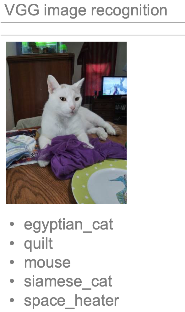 For example, we used image recognition on “dog” and “cat” from images to further identify the image.